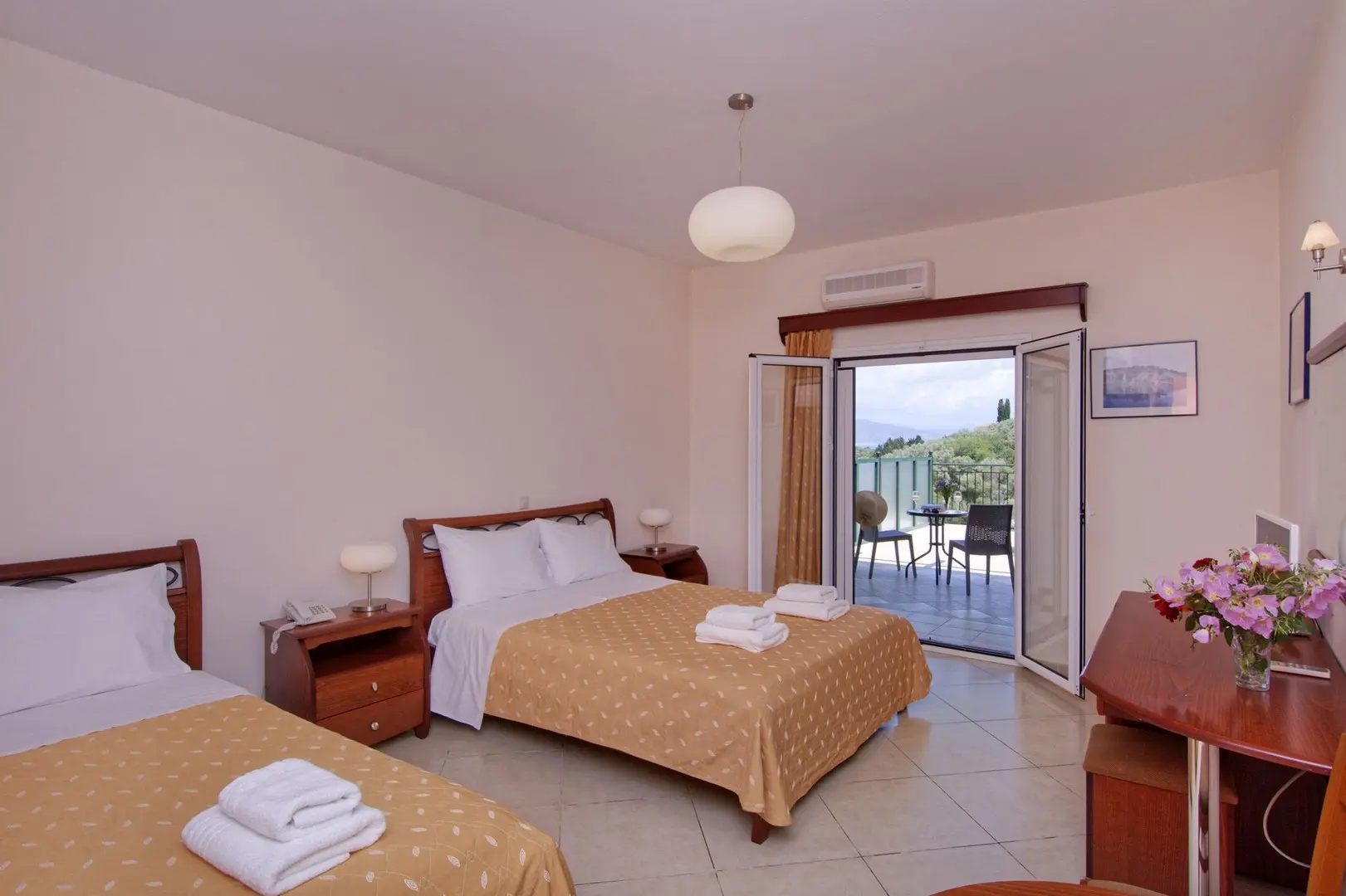 All rooms are air conditioned. We have doubles, twins & triples and all have a balcony, fridge, kettle, telephone and hairdryer.